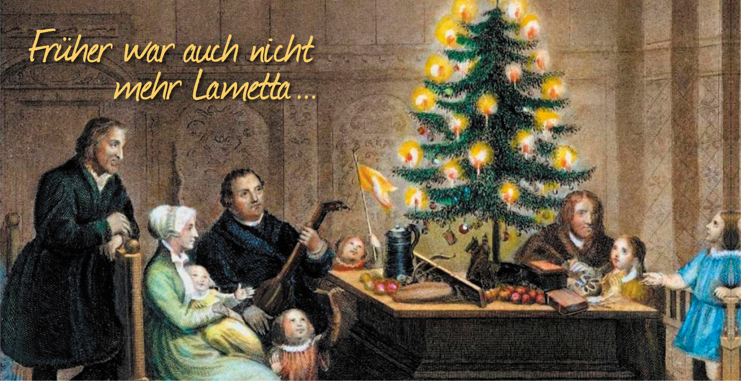 "Die Weihnachtsstube im Hause Martin Luthers - wie es sich ein Maler im 19. Jahrhundert vorstellte: Christbaum, Familie, Geschenke, was Gutes zum Naschen, Freunde zu Besuch und Musik. All das gehört auch heute zur Feier des Weihnachtsfestes.