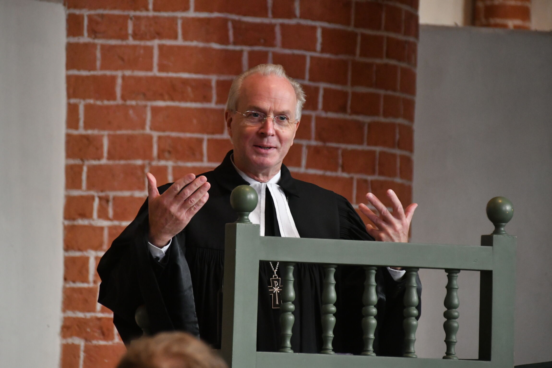 Im Anschluss wechselten alle in die Räume des Ulrichsgymnasiums. Unter dem Motto "Frischer Wind: Gemeinde leiten. Kirche voranbringen" standen hier die 12 Workshops zu den unterschiedlichsten Themen: Es ging um Chancen regionaler Zusammenarbeit und um Richtlinien für Baumaßnahmen, um die Gewinnung von Ehrenamtlichen und um die Zusammenarbeit mit der Verwaltungsstelle Kirchenamt. Es gab praktische Tips zu Verhalten und Sprache im Gottesdienst sowie Austeilübungen zum Abendmahl. Die Aufgaben der Kirchenvorstände vor und nach dem Gottesdienst wurden besprochen, bis hin zur Frage "Was tun, wenn der Pastor oder die Pastorin einmal ausfällt?" Auf einen lebensnahen Gottesdienst zielte der Workshop "Hier brummt das Leben." Ein anderer Workshop fragte "Muss es wirklich WLAN sein?" und erörterte Chancen und Grenzen moderner Technik in der Kirche.