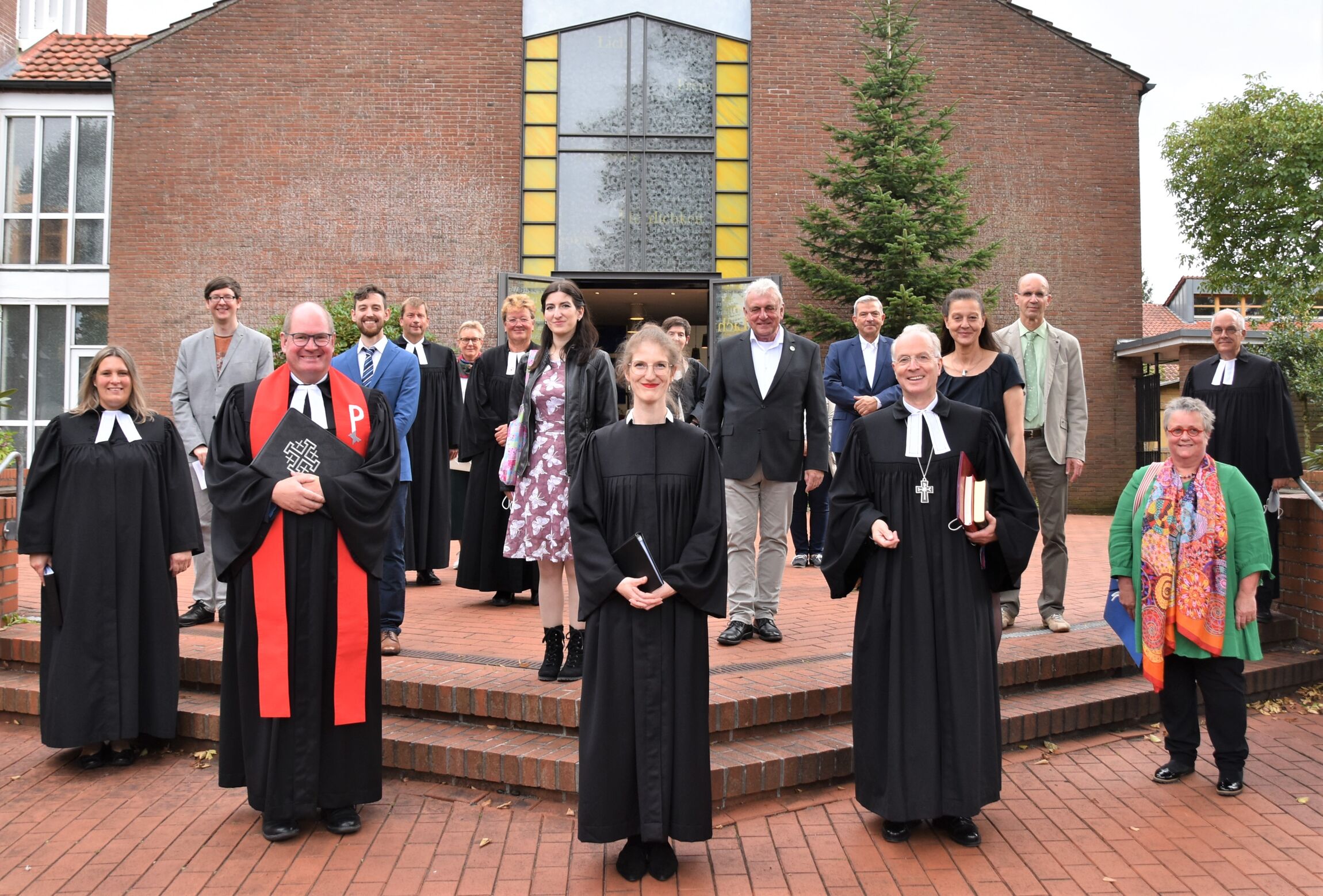 Der Regionalbischof gab einen kurzen Einblick in den Lebenslauf der 34-jährigen Theologin. Geboren am Reformationstag 1986 in Wilhelmshaven, katholisch getauft, wuchs sie in Wittmund auf und machte dort das Abitur. Im Laufe ihres Bildungslebens reifte dann immer mehr der Wunsch, als Pastorin den Menschen in besonderer Weise nahe zu sein. Sie habe sich letztlich dazu entschlossen, Evangelische Theologie in Münster und Göttingen zu studieren. Nach ihrem Ersten Examen 2014 hat sie fünf Jahre als wissenschaftliche Mitarbeiterin an der Theologischen Fakultät der Universität Göttingen gearbeitet, davon dreieinhalb Jahre am Lehrstuhl für Geschichte des Christentums und seiner interreligiösen Beziehungen. Ihr Vikariat absolvierte sie dann in der St. Petri Kirchengemeinde in Göttingen-Weende. Dort gehörte auch der Lehrauftrag an einer Berufsschule dazu. Die frisch ordinierte Pastorin ist glücklich, in Lingen angekommen zu sein: „Ich freue mich, hier zuhause zu sein, Menschen kennenzulernen und in die Johannesgemeinde hineinzuwachsen.“