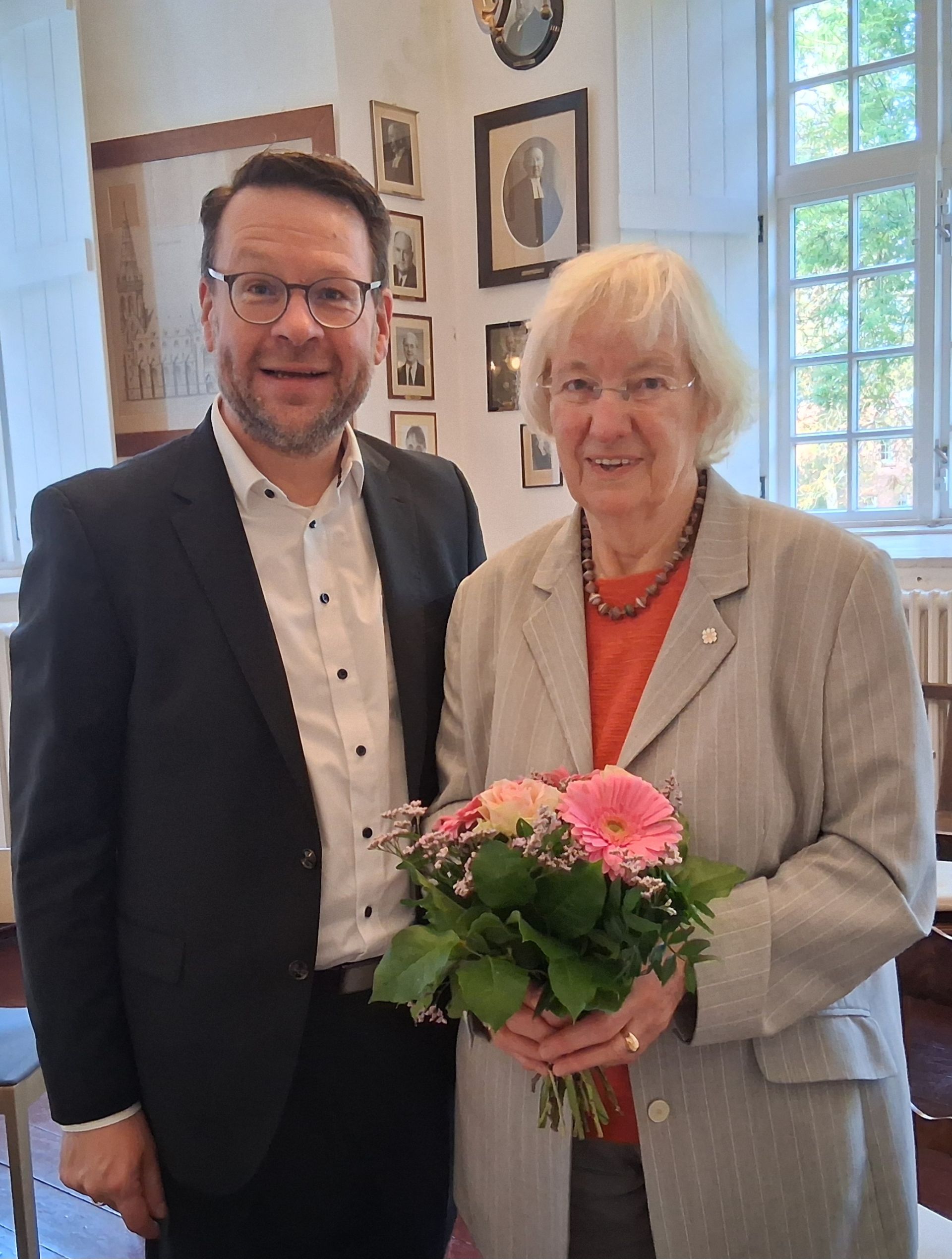 „Durch Menschen wie Sie wird Kirche zu einem liebenswerten Ort“, sagte am Mittwoch (22. Oktober 2025) Superintendent Christian Neumann anlässlich der Verleihung des silbernen Facettenkreuzes an Angelika Ruge. Die 85Jährige erhielt die höchste Auszeichnung der Landeskirche Hannovers, weil sie sich 30 Jahre als Kirchenvorsteherin ehrenamtlich für die Ludgeri-Kirchengemeinde an vorderster Front engagierte und noch immer in verschiedenen Bereichen aktiv ist.