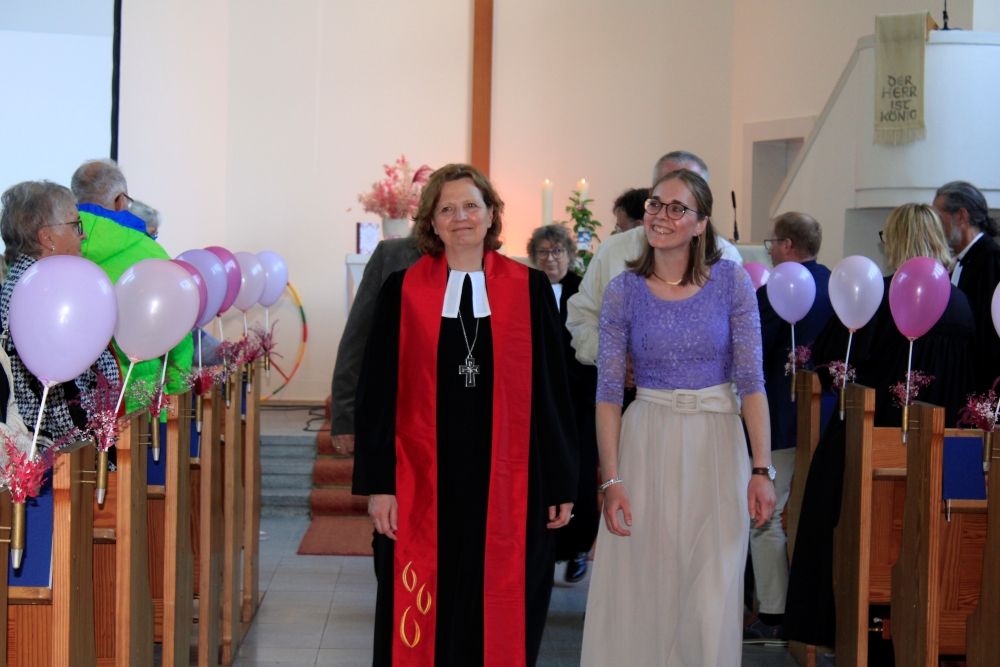 Am 18. Mai wurde Lara Wissemann von Regionalbischöfin Sabine Schiermeyer in der festlich geschmückten Wiesmoorer Friedenskirche eingesegnet. Die Einsegnung war kein Tusch zu Beginn ihrer Tätigkeit im Kirchspiel Wiesmoor und im Kirchenkreis, sondern ein Fest auf dem Weg: nach ihrer Anerkennungszeit wussten die Gemeinden, die Kolleginnen und Kollegen und die Jugendlichen auf Gemeinde- und Kirchenkreisebene schon längst, welch fähige und warmherzige Kollegin sie mit Lara Wissemann in ihrer Mitte haben, und hießen sie mit einem kräftigen Applaus willkommen.