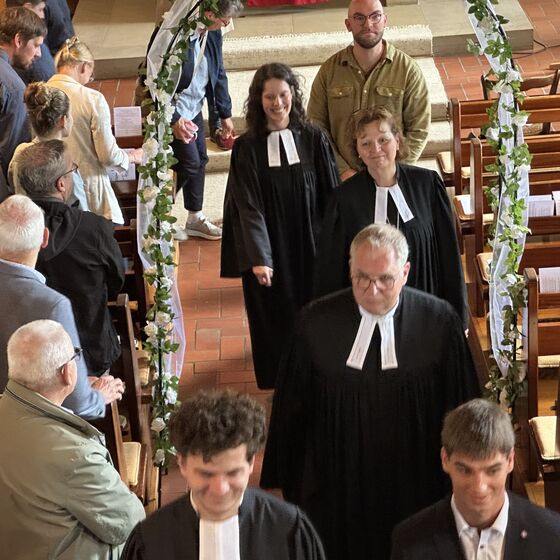 Den Auftakt des Gottesdienstes übernahm der Vorsitzende des Kirchenvorstands, Frank Müller, der die Freude der Gemeinde darüber betonte, dass die Pfarrstelle ohne Vakanz neu besetzt werden konnte. Für die musikalische Gestaltung sorgten Heike Kieckhöfel an der Orgel sowie der Chor grenzenlos unter Leitung von Thomas Schmidt. Superintendent Thomas Kersten verlas die Ordinationsurkunde.