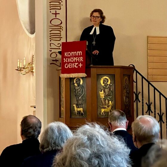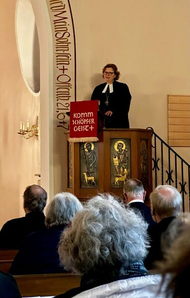 In ihrer Predigt zur Hochzeit zu Kana sprach Regionalbischöfin Schiermeyer von der „Rechenformel 1 + 1 = 1“, die hier Wirklichkeit geworden sei, und ermutigte die neue Gemeinde zu Zuversicht und Offenheit für Neues.