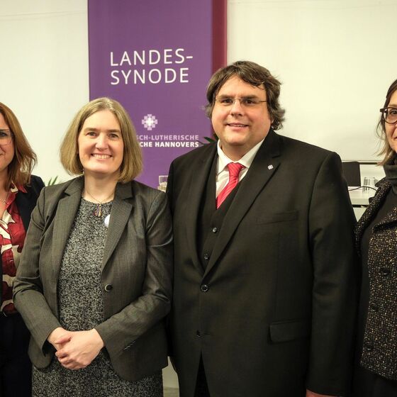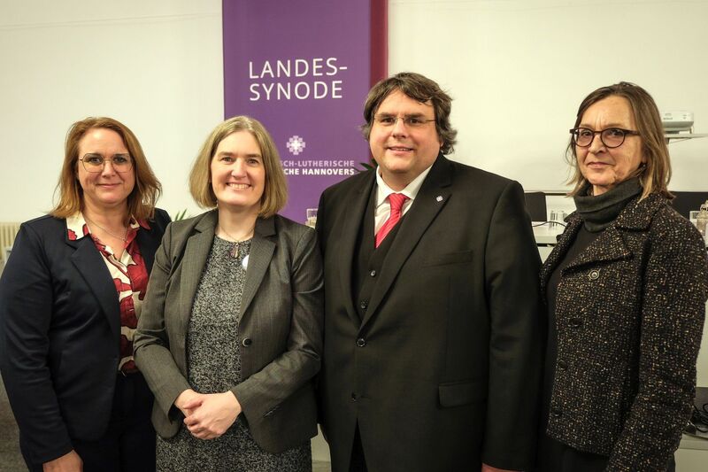 2) Neu gewähltes Präsidium (v.l.: Nicole Strecker (Sprengel Ostfriesland-Ems), Wencke Breyer (Sprengel Hannover), Daniel Aldag (Sprengel Ostfriesland-Ems), Brigitte Kumkar (Sprengel Hannover).