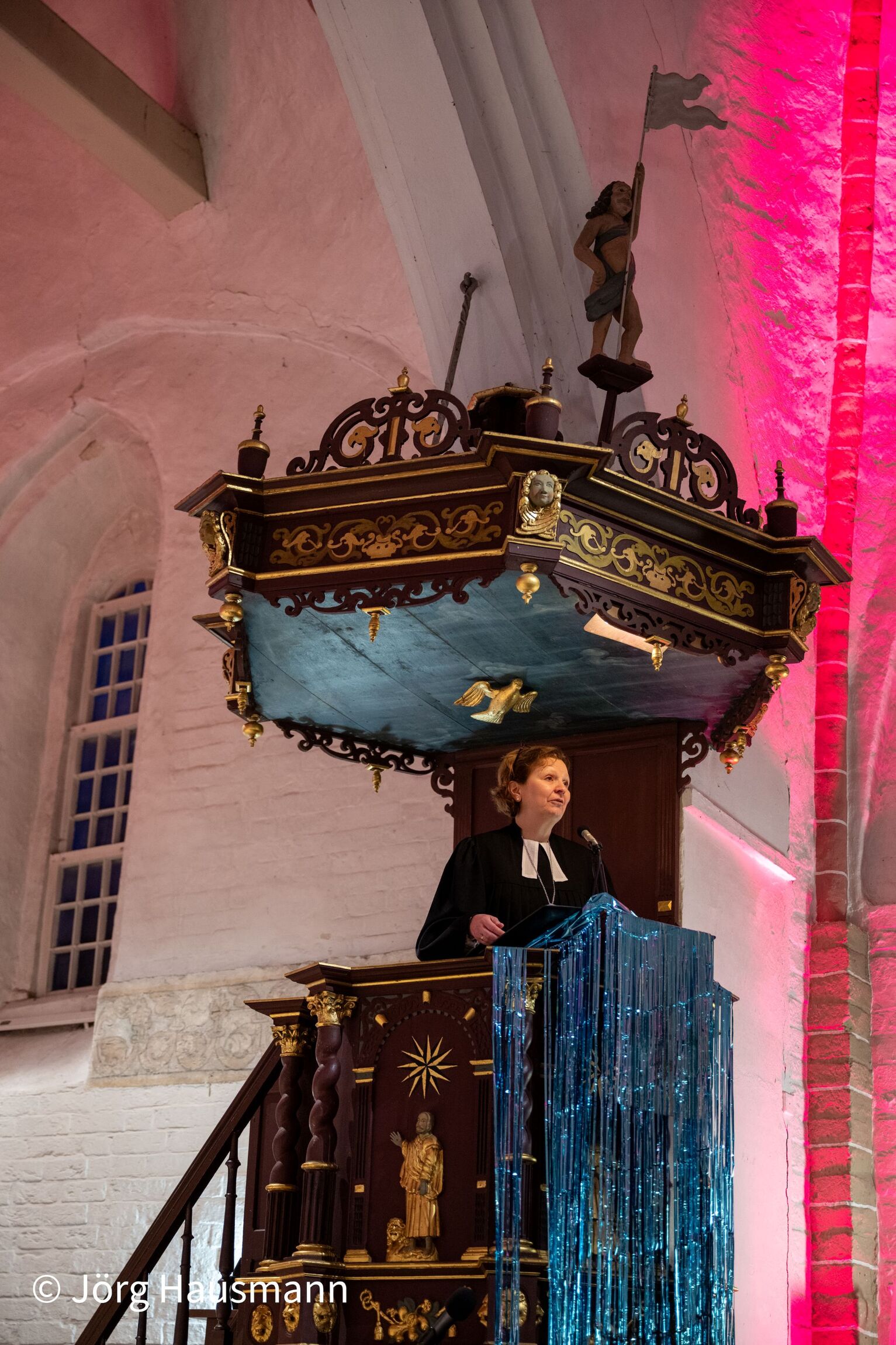 Musikalisch begann der Chor mit „I Have A Dream“, bevor „The Winner Takes It All“ folgte – jenes Lied, das den inhaltlichen Kern der Predigt bildete. Diese hielt die Regionalbischöfin des Sprengels Ostfriesland-Ems Sabine Schiermeyer. Ausgehend von den Seligpreisungen der Bergpredigt stellte sie die populäre Botschaft „Der Gewinner bekommt alles“ den Worten Jesu entgegen. Mit persönlichen Erinnerungen an ihre Jugend und die prägende Kraft der ABBA-Musik zeigte sie, wie sehr dieses Lied eine Weltsicht widerspiegelt, die Jesus bewusst durchbricht: Nicht die Starken und Lauten seien die eigentlichen Gewinner, sondern die Sanftmütigen, Leidtragenden und Friedensstifter. Eine Predigt, die nachdenklich, tröstlich und ermutigend war, erkennbar auch am Applaus am Ende der Predigt.