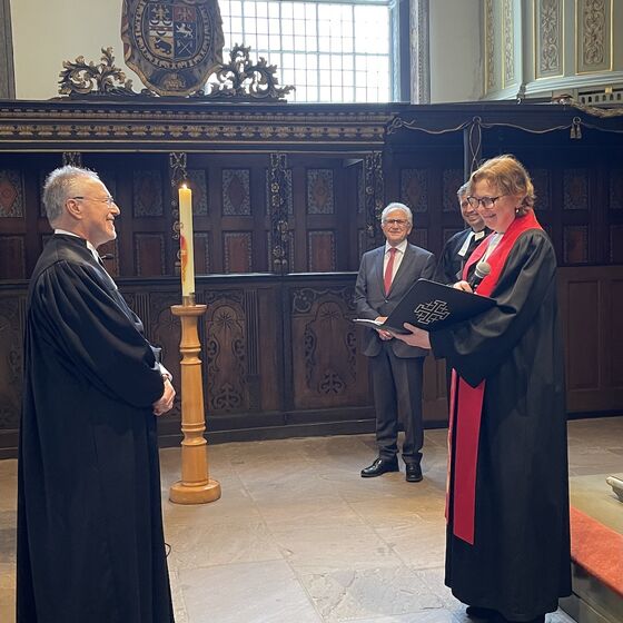 Zugleich machte sie deutlich, dass der neue Dienst auch Herausforderungen mit sich bringen werde. Doch gerade dafür bringe Mertin wichtige Erfahrungen und eine klare innere Haltung mit. Verwurzelt im Glauben und offen für Neues könne er dazu beitragen, die Kirche in einer Zeit des Wandels weiterzuentwickeln. Mit den Worten der Verheißung aus Jesaja gab sie ihm Gottes Segen mit auf den Weg: Vertrauen zu haben, dass Gott Wachstum schenkt „wie Gras zwischen Wassern“.
