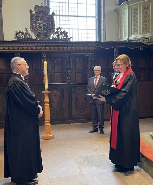 Mit Blick auf die Menschen und die Kirche vor Ort betonte sie die tiefe Verwurzelung im Glauben und die Kraft der Gemeinschaft: „Eine Verwurzelung in Gemeinschaft und Tradition und Glauben hält fest, wenn das Leben rau wird.“ Zugleich ermutigte sie den neuen Superintendenten, die Zukunft gemeinsam mit anderen zu gestalten – als „Entdecker und Förderer der Gaben anderer“ und als Teil eines starken Teams im Kirchenkreis.